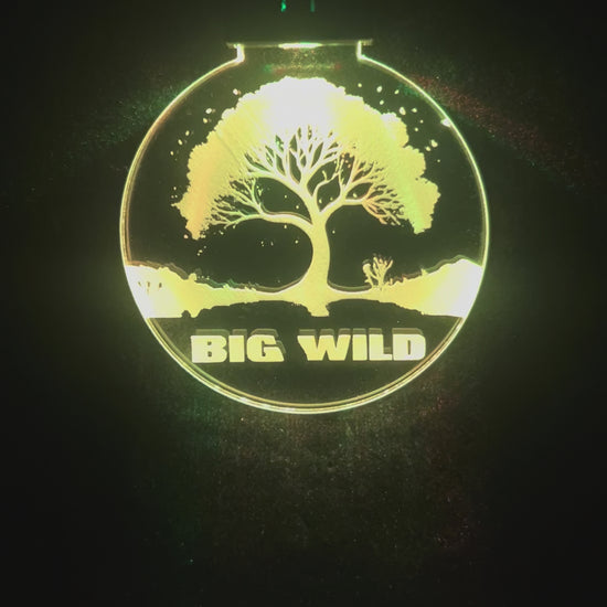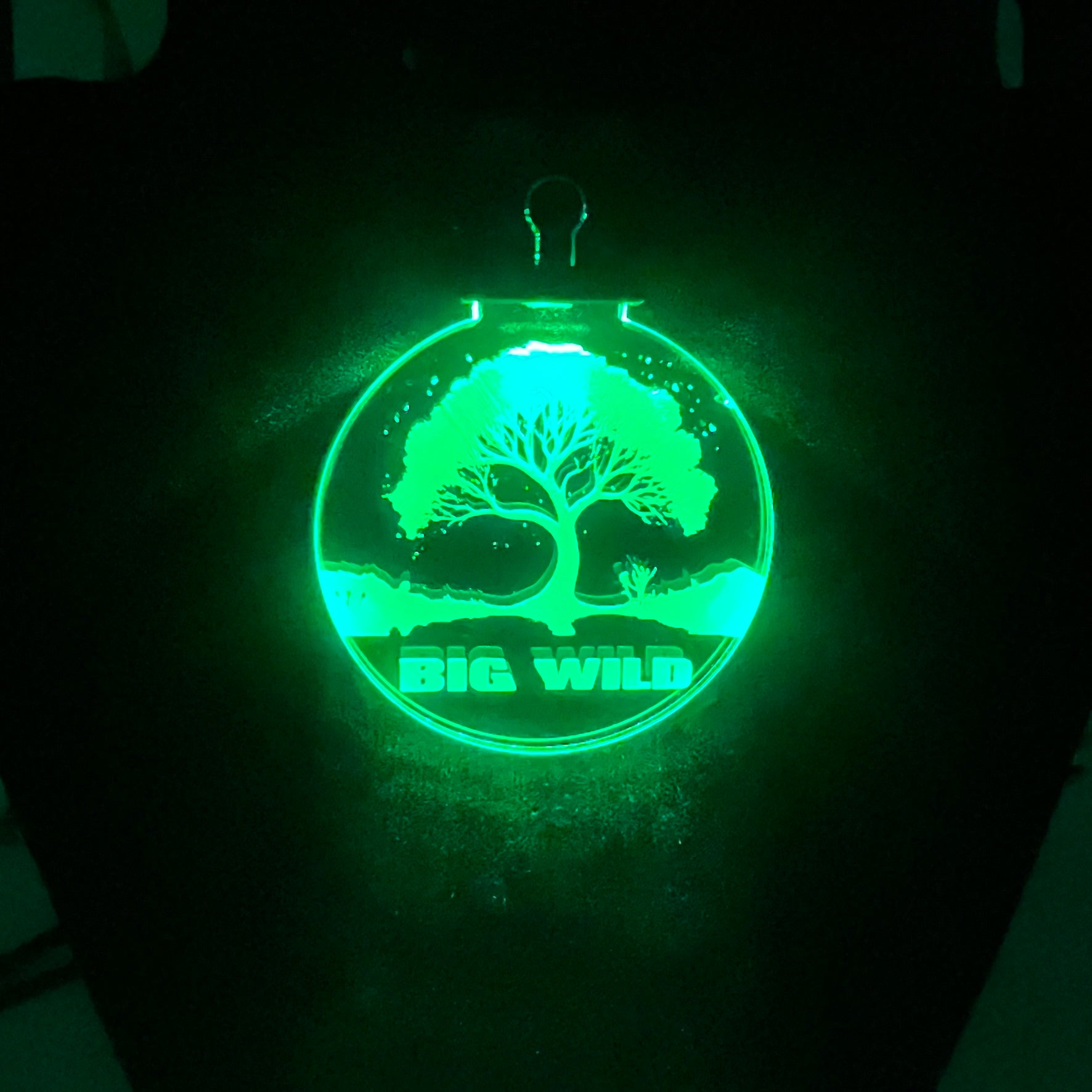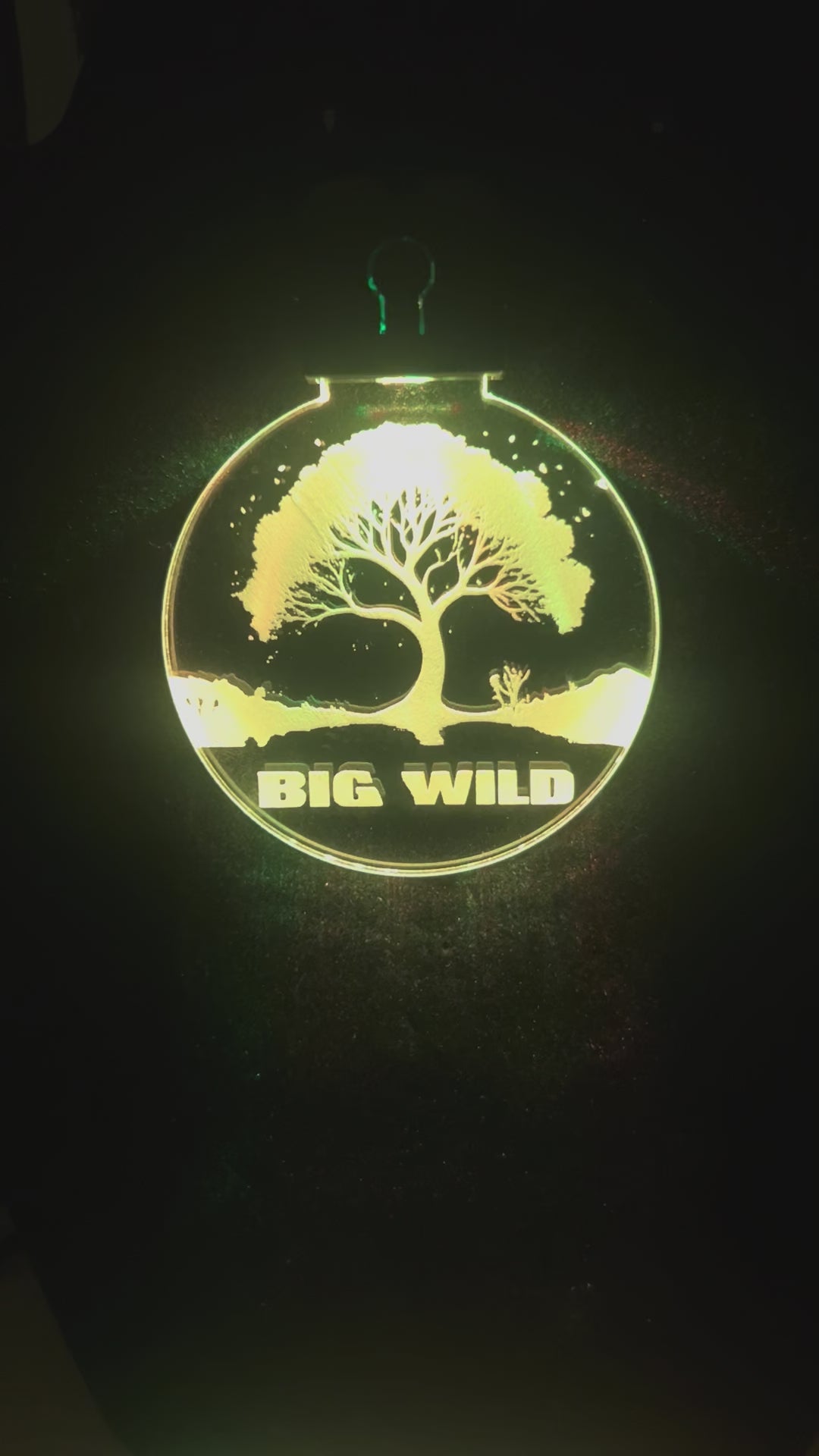 3.5" laser-etched acrylic pendant. LED, RGB base offers the option of 7 different static colors, fading, or flashing light modes that switch effortlessly with the press of a button on the device itself. Micro-usb rechargeable lithium ion battery with a 4-6 hour battery life. 1 year warranty that covers the LED base in its entirety.