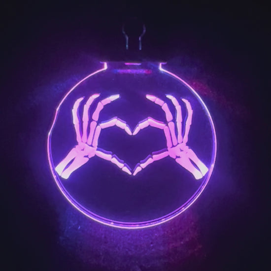 3.5" laser-etched acrylic pendant. LED, RGB base offers the option of 7 different static colors, fading, or flashing light modes that switch effortlessly with the press of a button on the device itself. Micro-usb rechargeable lithium ion battery with a 4-6 hour battery life. 1 year warranty that covers the LED base in its entirety.
